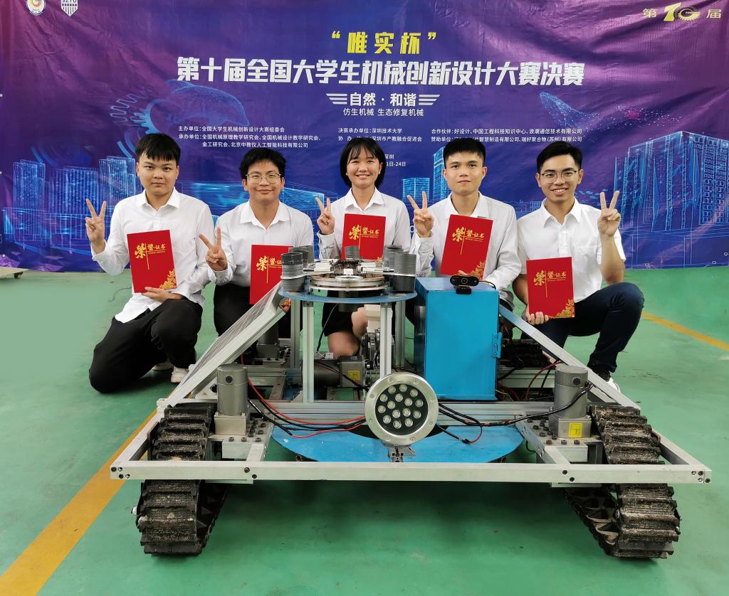 8月22日-23日,“唯实杯”第十届全国老员工机械创新设计大赛在深圳技术大学举行,全国200支参赛队伍进入总决赛。经过激烈角逐,公司机械设计制造及其自动化专业吴志安、陈俊延,电子信息工程专业刘大华,数据科学与大数据应用专业赖永朋和机械电子工程专业邹小田的参赛作品“红树林生态植被修复机器”(指导老师:李德荣、吴敬权)荣获全国一等奖。