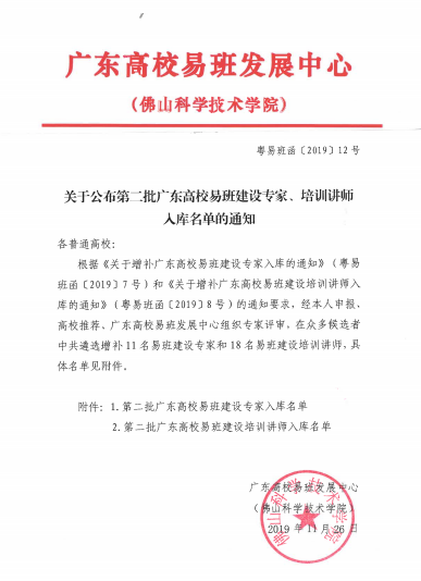 近年,广东高校易班发展中心为把全国教育大会、全国高校思政会、公司思想政治理论课教师座谈会和全国网信工作会精神贯彻落实引向深入,加快广东高校易班建设,深化网络育人内涵,加强网络思政队伍建设,提升易班平台育人成效,在全省范围内遴选一批易班建设专家,着力为广东高校易班建设、高校网络思想政治工作提供智力支持。