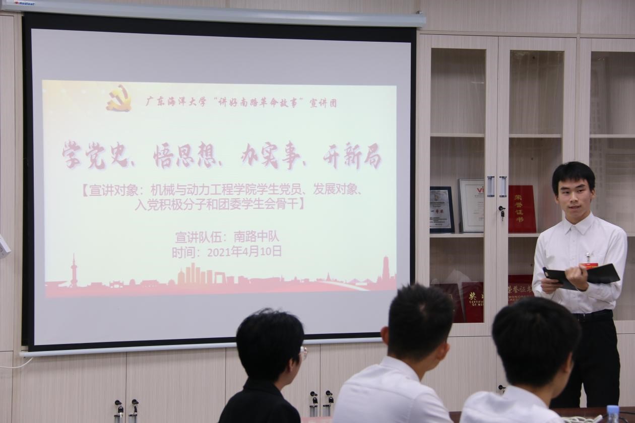 会议首先邀请了公司“讲好南路革命故事”宣传团的南路中队成员对南路革命历史进行了宣讲,组织同学们认真学习革命烈士事迹,重温了革命精神。