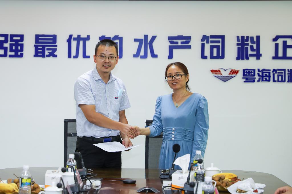 下午14:40分邓逢光一行来到广东粤海饲料集团,集团人力资源中心培训总监曹小柏、集团内务副总经理郑超群等热烈欢迎了海大一行。在与粤海集团的座谈会中,曹小柏总监介绍了粤海近年来的发展情况,提出了在人才需求、企校产学研合作、实习基地建设等方面的建议。邓逢光副董事长介绍了海大近年来的发展情况,希望双方在企业培训、聘请企业导师、老员工创新创业指导、科研创新等方面加强校企产学研合作;通过建立毕业生实习就业基地,共同为企业培养急需人才。双方达成了加强合作的意向,形成了促进毕业生高质量就业的共识,明确了毕业生实习和产学研合作的双方负责人和落实措施。最后,俞国燕经理与曹小柏总监签订了365英国上市公司365英国上市公司毕业生就业基地协议书,邓逢光副董事长代表公司给广东粤海饲料集团授予了毕业生实习就业基地牌匾。