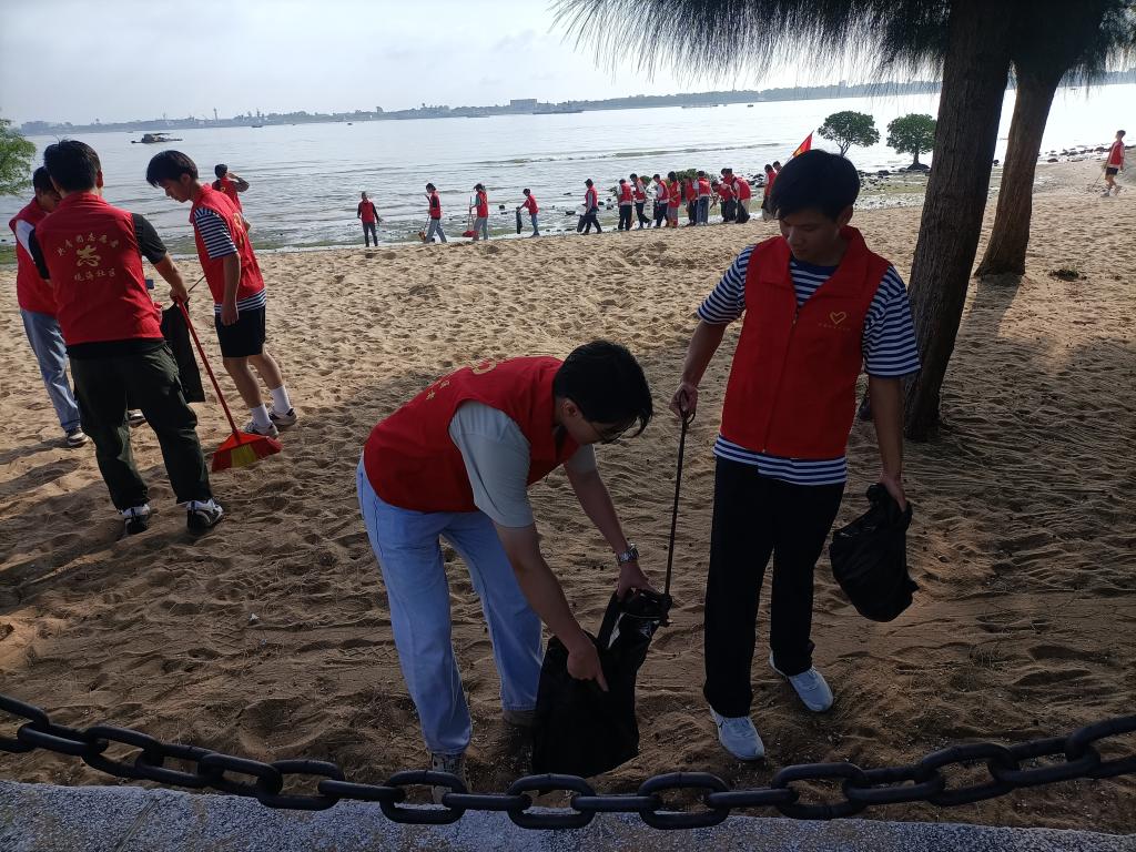 活动期间,公司师生首先参观观海社区新时代文明实践站,了解社区文化活动,员工代表向社区群众做“垃圾分类让城市更清洁”的宣讲。随后公司师生穿上红马甲,在社区工作人员带领下赴红树林开展志愿服务活动,此次活动共有三个环节,分别为“海滩清洁,从我做起”、“河”我一起,净滩同行”、“垃圾分类靠大家,健康生活你我他”,志愿者们有的拿着铁夹子,有的拿着垃圾袋,有的拿着扫帚,互相配合,争先恐后地清理沙滩上、河岸边的漂流废弃物和被人随手丢弃的垃圾。